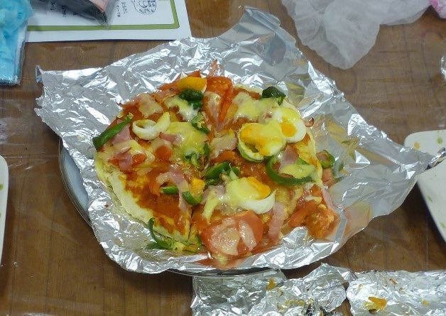 エコクッキングピザ作り(電気,ガスを使わず,炭火を利用)