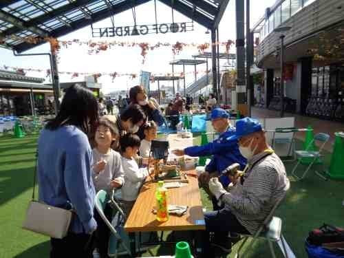 加古郡リサイクルプラザ主催のイベントに、リサイクルリーダーとして“牛乳パックを使ったクリスマスハウス作り”体験教室のブースを担当。事前にメンバーで試作を重ねたが、工作は少し難しかったようで、メンバーがサポートしながらの体験教室となった。親子での参加が多く熱心に取り組んでもらい、盛況の体験教室となった。 |