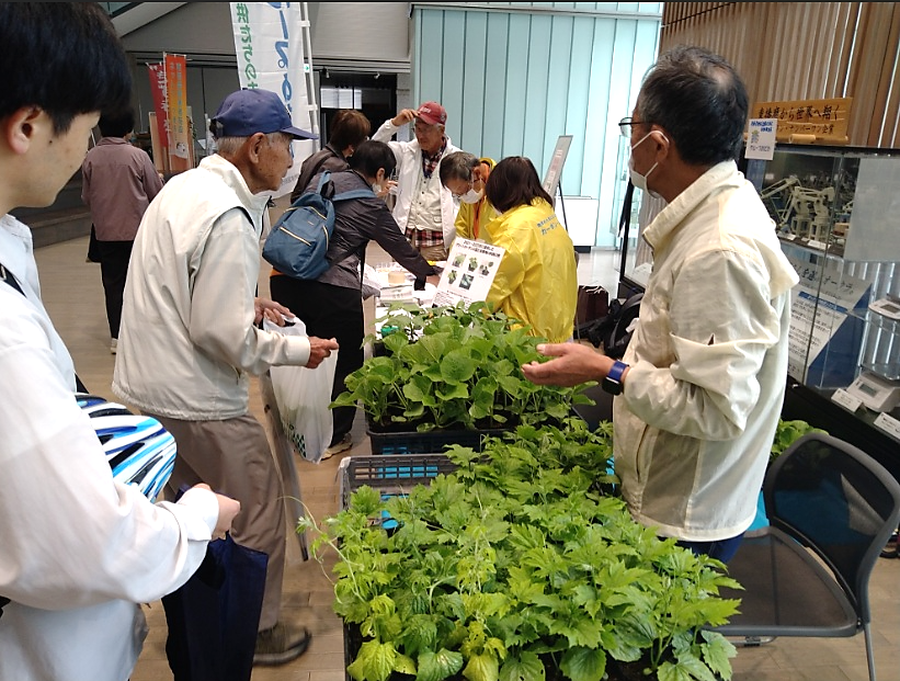 ・両会場でゴーヤ・ササゲ豆・ヘチマなどの苗を無償配布した |